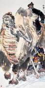 赫赫兄有罗汉相,而犹有士人风,性情内刚外和,言行洒落清脱。其艺道之志秉持天人之际、合而为一。其修养多方,诸艺兼善,融通中西,法古变今。正缘于此,在当代画坛,赫赫兄的艺术很难被归类。然以其独特的成就,具有独特的色彩。其既是特立独行的一股清流,又被戏称为画坛的“稀有品种”。其笔下的人物画,写实写意相辅相成,高度融合。更重要的是其作品中一以贯之的人文精神。观其画,始于真情、发于感兴、凝于造型、显于笔墨、成于气象。无论是文人高士、道释人物还是名人肖像、草原风俗,皆以文心相应。体现出超越时空的雄浑与高古、苍茫与静穆。又无论是笔精墨妙的小品,还是挥洒驰骋的巨幅,俱于豪放中见精微,点画中见性情。一分为二,形成多维对偶的互根互生关系;合二为一,在万千变化中制心一处。这是自然造化之功,也是中国人文精神生生变化之端。于此,赫赫兄深有感契,静观自省,澄怀观道。于笔墨中安顿心灵。