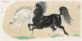 唐代有韩干,宋代李龙眠,元代任仁发,都画马名手。当然元代赵孟頫画得也顶级牛逼,只是他什么都太牛,不只以马显。明代仇英、唐伯虎偶有涉猎,都是绝响。清代最副盛名的画马高手是中西合璧郎士宁。当代画马名气最大是徐悲鸿。秦修平虽然对徐悲鸿有深刻研究,博士论文做的就是徐悲鸿,但他画的马跟徐悲鸿不一样,不是徐蒋体系,水墨素描,依然传统形、色、墨,接的还是赵孟頫、李龙眠,不光绢、纸本,雕塑、壁画、西方当代艺术里的相关题材弄法,都看都学,博采众长,终有当代画坛名满天下“修平马”!