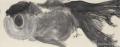 展厅之中,丈二宣纸铺展如壁,一条条大鱼跃然而出。鳞片细节被全然舍去,鱼的形体、姿态与动势,高度凝练为笔墨自身的节奏与力量——浓淡干湿的交织,是水的深度也是墨的呼吸;笔锋的提按顿挫,是鱼的游弋更是手的舞蹈。那些游鱼,在水墨氤氲中既是具体的生命形态,更是抽象的笔墨律动,它们挣脱了具象的束缚,回归到绘画语言的本体,却因此获得了更为充沛的生命张力。这便是周京新笔下“鱼”的独特之处:它们不是被观看的对象,而是笔墨自我呈现的契机;不是自然物象的摹写,而是心象的外化、意蕴的凝结。