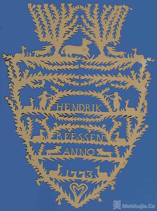瑞士剪纸是一门叙事的艺术,以阿尔卑斯山区生活为创作核心,犹如凝缩的微观世界,通过其人物、形式和图案组合,引领观者沉浸其中。这类作品多以黑纸剪成,构图讲究对称,装饰繁复瑰丽,细节密布如织,呈现既鲜明又细腻的变化。