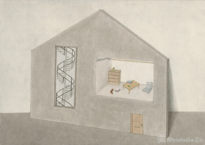 空城是一种“空”的结构性显影。史子涵将它从不同的现实中抽离出来,形成她自己的建筑群或空间群,它们不依附于任何具体地理坐标,却精准映射着现代人精神栖居的疏离与凝滞;每扇虚掩的窗、每个冰凉的空调、每堵僵硬的墙、每把沉默的钥匙等等,都成为她自我解剖的切片,成为她对“家”的重新定义——不是归处,而是开口;不是庇护所,而是记忆剖面的深沉情感。因此,她的空城便是她精神与身体的“冷记忆”。