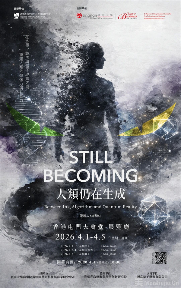 展览「Still Becoming 人类仍在生成」 将于2026年4月1日至4月5日在香港呈现。本次展览聚焦水墨、算法与量子现实之间的生成哲学,探讨在人工智能时代,人类想象力与判断力的持续可能。