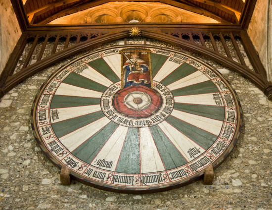 谁能想象到,这个圆桌竟然真实存在着? 但这是中世纪一次引人入胜的“造假”,1290年的时候,一位中世纪的工匠根据传说把这个圆桌打造了出来,让圆桌神话变成现实。在亨利八世统治期间,在英国自豪庆祝亚瑟王的精神财富的时候,这个圆桌被获许在中间描绘上一朵都铎玫瑰。这个奇特的桌子成了传奇的亚瑟王在英国历史扮演重要角色的一个见证。(怀心)