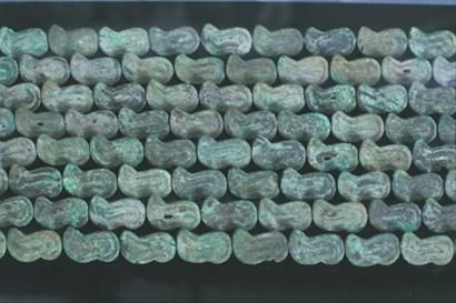 墙壁展板通过文字和图形展示了中国古代范铸法,还通过图片展示了商代四羊方尊、鸟形陶模、青铜刀、兵器的古代铸造精品。青铜器展示区是全馆分量最重的展区,国家一级文物西周青铜铭文曲刃矛式短剑,国家二、三级以上文物西周青铜盔、春秋时期盔甲、殷商时期铜镜等堪称镇馆之宝。