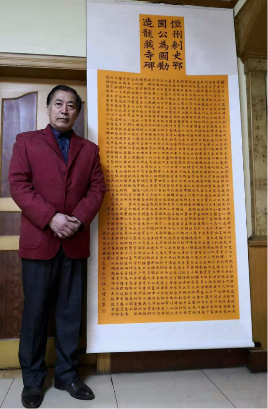 正是无数个这样严谨入微的认真工作,才使得对《隋龙藏寺碑》书法与文本进行整体研究进展的卓有成效。经过数个寒暑息交绝游、闭门谢客如同禅僧的闭关修行,在无数次查阅了数以百万字计的涉及隋碑的历代史料、佛学辞典经传的漫长时间里,鉴印先生并对魏晋南北朝笔法悉心揣摩和对龙藏寺碑书法精髓得悟于心后,先生终于完成了中国书法史上首次对《隋龙藏寺碑》全部文本的破译补阙和对原碑再现其开皇原貌的实验性复原重刻。21011年11月,他的研究论文“《隋龙藏寺碑》泐损残缺字辨识考析”发表在《中国文物报》,又引起文物界、书法界关注。