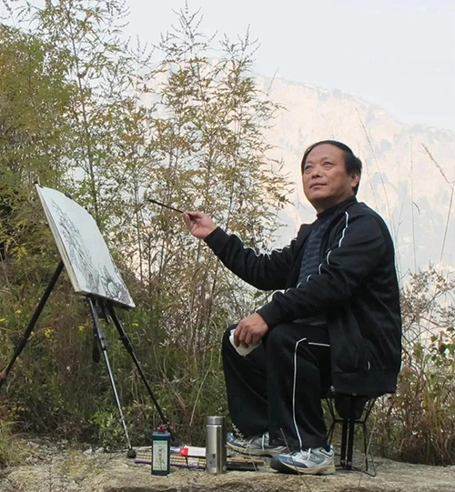 多年来,在焦墨山水空间里,他焚膏继晷,观察揣摹,严谨治学,深刻感受和精心提炼笔下的千山万水,同时走出户外,大名山大川,观流云飞瀑,听鸟叫蝉鸣,大自然是最好的老师,万千造化,师法自然,方为大道。他多次深入太行山、云蒙山、京郊十渡等地进行现场写生,焦墨笔法融入北方干枯的山石结构,干与湿、阴与阳、黑与白结合得如此协调一致,一批批这样的焦墨山水作品就这样在他的笔锋挥动下毕现毕致。《梦乡月儿圆》《青山无古今》《家山金秋》《故乡情怀》、《新视角》《京郊墨韵》《太行亘古》《十渡写生》、《太行魂》等多件作品入选中美协全国大展并获奖。所以他的作品所表现出来的个性和语言,是独属于他的,逐渐有了自家风貌。