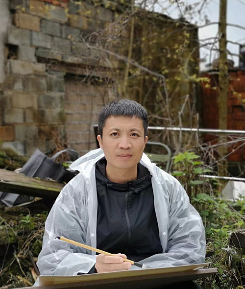 古代画家从自然山水本身汲取艺术的灵感,重视师法自然,而不是对前人的山石树木“挪前移后”。石涛有“搜尽奇峰打草稿”的心胸,才走上大师的圣坛。范宽曰“师古人,不如师造化”,终年隐居终南山观察烟云阴霁,才创造出不同于李成的雪景山水。作为当代画家,不仅师古人的技法,更善学前人的笔墨精神。传统山水笔墨语言向当代创作的转换,总是需要一定的媒介和技法的,许多人在临摹传统的道路上虽然技法已经很娴熟,但当进行创作时,却无从下手。蔡凡彬2019年至今,一直追随朱零老师的传统山水笔墨转换班学习“对景创作”。(朱零,书画家,中国美术家协会会员,中国书法家协会会员),成为朱零高研班的佼佼者。