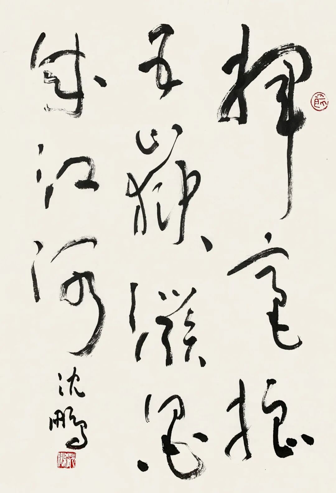 沈鹏通过“沈鹏范式”证明,传统书法在当代语境下仍具有创新潜力。他的作品在形式构成、空间经营、墨色运用等方面融入现代视觉意识,为书法与装置艺术、数字媒体的结合提供可能。