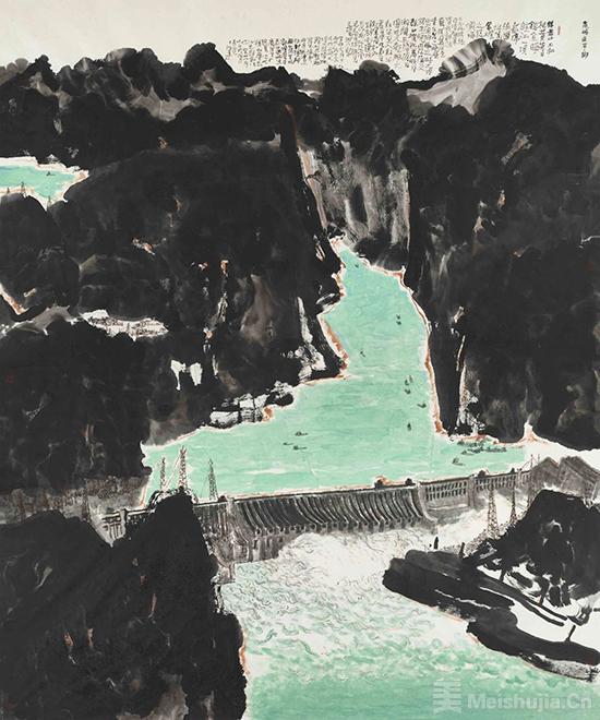 在艺术语言的革新上,跃奎对色彩的探索堪称独树一帜。他在深谙水墨精神的基础上,大胆拓展色彩的表现力:既恪守中国画“随类赋彩”的传统要义,又突破“墨主色辅”的固有范式。观其作品,矿物颜料的厚重与植物色的清透相映成趣,斑斓色块与氤氲色韵交织共生,既保留了东方美学的含蓄意境,又注入了当代视觉的明快张力。例如,他以青绿色系重构山水图景时,巧妙融入冷暖色调的碰撞,使传统山水在光影变幻中焕发新生;在表现新题材时,更以色彩的层次叠加传递情感的丰沛,让画面既有生活的温度,又具艺术的诗性。