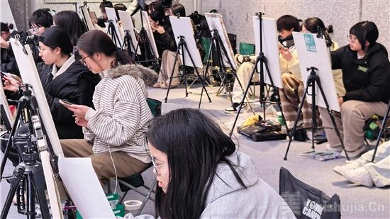 除了画室的统一安排,也有家长选择更个性化的陪考方式。嘉兴教育学院美术教研员沈水明的儿子也是本届考生,前段时间一直在杭州老鹰画室集训,这几天回嘉兴参加联考。“我的工作跟美术教育相关,平时会比较关注他的学习情况,但这样可能也会给他造成一些压力,考试前我还是以做好他的后勤工作为主。”沈水明说。